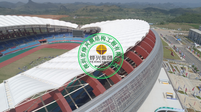 崇左市體育中心項(xiàng)目是廣西壯族自治區(qū)統(tǒng)籌推進(jìn)的重大項(xiàng)目,是為迎接2018年廣西第十四屆少數(shù)民族傳統(tǒng)體育運(yùn)動會而建設(shè),其中膜結(jié)構(gòu)部分全部由我們燁興膜結(jié)構(gòu)設(shè)計施工安裝。