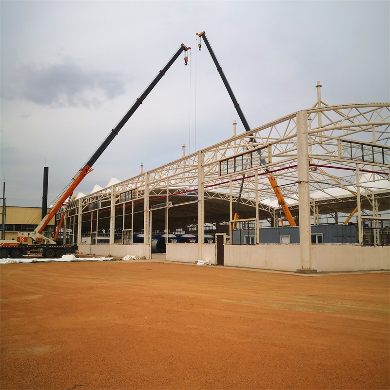 工程概況:烏茲別克斯坦阿漢加蘭磚廠膜結(jié)構(gòu)項(xiàng)目,是典型的屋面及外墻立面都采用鋼膜結(jié)構(gòu)的大型廠房工程,總用膜量48800平方米,由深圳市燁興膜結(jié)構(gòu)工程有限公司提供一站式解決服務(wù)。