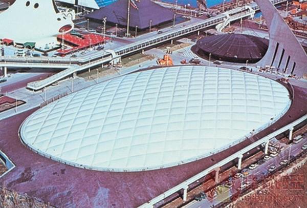 1970年日本大阪世博會(huì),由David Geiger完成結(jié)構(gòu)設(shè)計(jì)的美國(guó)館,首次建成了大跨低輪廓充氣膜結(jié)構(gòu)。