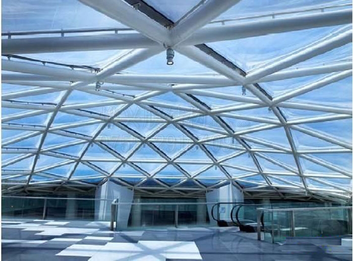 透光性能:ETFE 膜的透光率可高達95%。該材料不阻擋紫外線等光的透射,以保證建筑內部自然光線。通過表面印刷,該材料的半透明度可進一步降低到50%;由于其極好的透光性能,特別適合建造需人工模擬自然環(huán)境的建筑如植物園以及運動場館等。