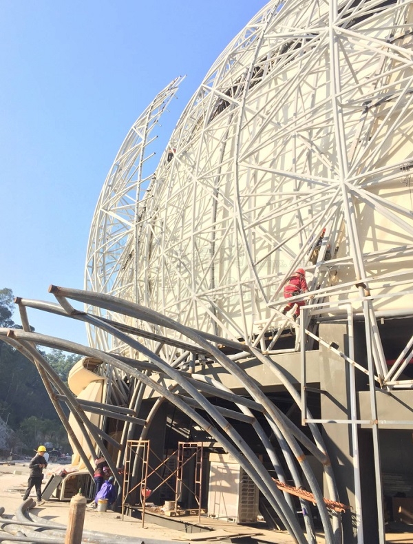 燁興云浮蓮花劇場(chǎng)PTFE膜結(jié)構(gòu)項(xiàng)目已經(jīng)進(jìn)入最后的裝膜階段,但前期全國(guó)性降溫引發(fā)的雨雪天氣,對(duì)項(xiàng)目的工期造成了一定延誤,為了工程能在規(guī)定的時(shí)限內(nèi)按時(shí)完工,目前公司將資源都暫時(shí)傾注,項(xiàng)目進(jìn)入沖刺趕工階段。