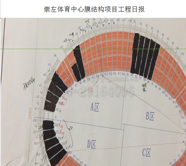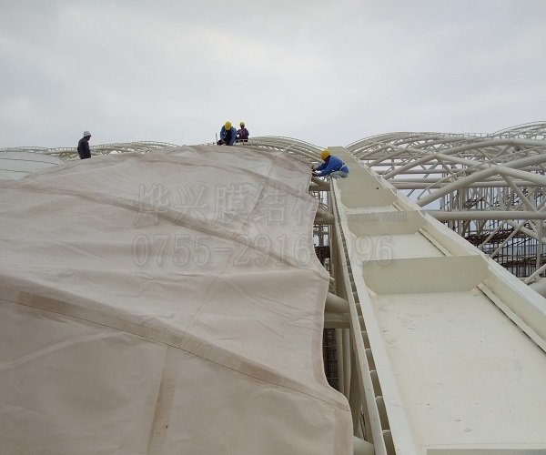 燁興崇左體育中心PTFE膜結(jié)構(gòu)項目工程簡報一角
