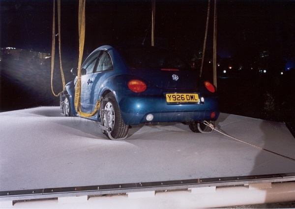 一般建筑用的ETFE膜只有200μm左右,但這薄薄一層透明膜材,其抗壓強(qiáng)度在40MPa以上,具有極強(qiáng)的抗撕裂能力,在不用尖銳物體戳碰的情況下,其物理性能媲美相同厚度規(guī)格的鋼鐵。我們做過(guò)試驗(yàn),在充氣后的ETFE氣枕膜能輕松將汽車托起并且膜材完全不受損壞;在單層膜實(shí)際案例中,沒(méi)有壓邊的情況下膜面也能正常站人(65kg),并且在人離開(kāi)后膜材能完全恢復(fù)。