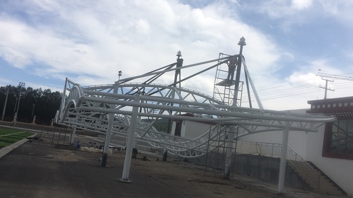 很多人對(duì)燁興膜結(jié)構(gòu)有誤解,認(rèn)為它總部在深圳,所以只承接當(dāng)?shù)丶爸苓叺墓こ蹋@是錯(cuò)誤的。深圳燁興膜結(jié)構(gòu)承接全國(guó)各地及海外的項(xiàng)目工程,并且有能力把工作做好。以甘南體育看臺(tái)工程為例,我們燁興接到工程委托后,根據(jù)工程具體情況組織施工計(jì)劃:鋼結(jié)構(gòu)由我們鋼構(gòu)供應(yīng)庫(kù)中最靠近甘南地區(qū)的標(biāo)準(zhǔn)鋼構(gòu)加工廠進(jìn)行預(yù)加工,然后打包運(yùn)輸?shù)巾?xiàng)目現(xiàn)場(chǎng),膜材同樣如此。在材料準(zhǔn)備妥當(dāng)后,我們會(huì)派遣精干的施工團(tuán)隊(duì)到現(xiàn)場(chǎng)進(jìn)行安裝拼接。