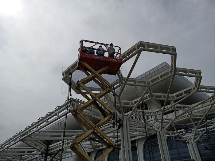 ETFE膜結(jié)構(gòu)項目,最費工期的是鋼結(jié)構(gòu)骨架制作施工。不同于一般的PTFE或者PVDF膜結(jié)構(gòu)工程,ETFE膜不能硬拉伸,所以其鋼結(jié)構(gòu)加工精度要求非常高,需要技術(shù)熟練的工人在專業(yè)人士的監(jiān)督下按嚴格工序進行。貴港高鐵站雨棚的鋼結(jié)構(gòu)體量較大,要求現(xiàn)場拼接安裝,從今年3月22日起吊第一片雨棚骨架,到6月11日鋼結(jié)構(gòu)才全部完工,在工期計劃之內(nèi)。我們的第一個ETFE氣枕單元,是在6月12號上午完成安裝。