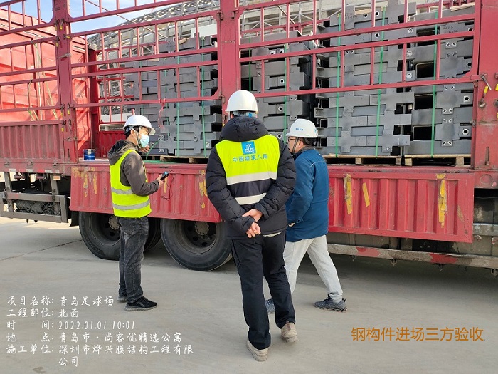 燁興公司是亞洲杯青島青春足球場項目的參建單位,負責主場館ETFE膜結構部分的深化設計及施工安裝。根據(jù)派駐現(xiàn)場的項目經理反饋,近期我們的膜單元樣品已經驗收通過,目前正在進行二次鋼構部件的加工安裝,鋁型材支架及ETFE膜原材料也備好在工廠,隨時準備加工出貨,春節(jié)年后工程將迎來快速施工周期。