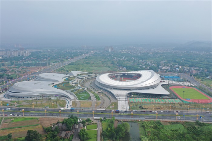 樂山市奧林匹克中心作為2022年四川省第十四屆運動會主場館,主要建設(shè)內(nèi)容為“一場三館”及配套用房,地下車庫等。其中“一場三館”包括主體育場30000座席,建筑面積約4.6萬平方米;體育館6000座席,建筑面積約2.7萬平方米;游泳館300座席,建筑面積約2.2萬平方米;綜合訓(xùn)練館建筑面積約2.9萬平方米,地下車庫約5.5萬平方米,共設(shè)1580個停車位。